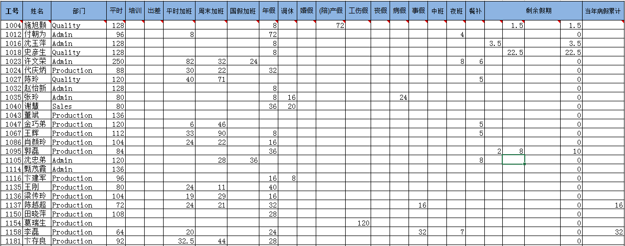 3、多张报表,满足多方面需求(多样和实用的报表能提升HR的工作效率,由于每个企业对数据的要求不同,将不同的数据分类到不同的表格中,便于HR的查询及使用,通过不同的颜色将不同的状态标记,让HR直接可使用考勤报表,无需二次加工。)