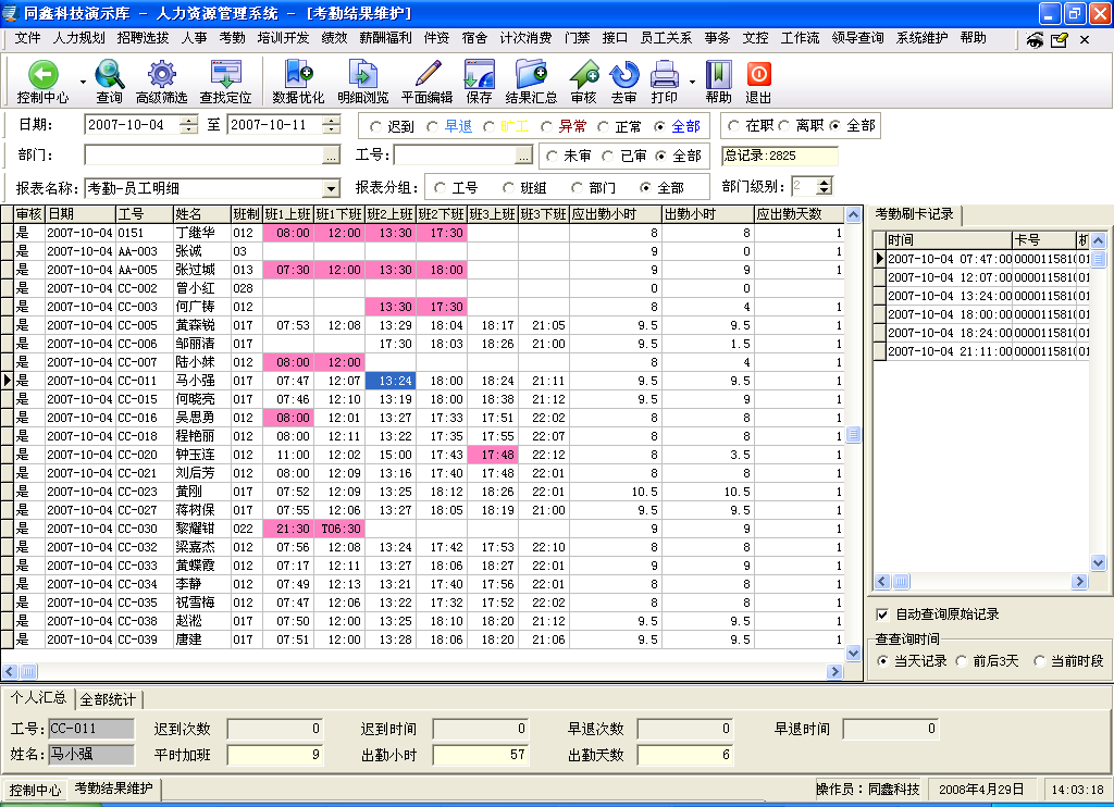 集成的“离职处理”与“考勤异常处理”??椋褂没Э梢栽诖砝胫安僮饔肟记谝斐J?,不需多个界面切换,而只需在一个界面下操作即可,充分发挥其处理快捷、高效性;