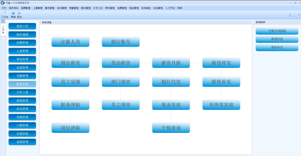 就在最近,国家出台了个税改革的相关政策,对于企业员工来说绝对是一个大福利,但是可会累坏了企业的HR部门。因为个税改革需要重新录入员工的基本信息,还需要对企业员工的薪资结构还有福利保障等方面做出调整,所以在工资管理还有福利纳税等方面,将会对HR部门做出巨大的挑战。同鑫HR管理软件能够轻松的帮助企业HR们度过这个难关,因为供应商会实时的更新HR人力资源软件的计算方式,以保障能够及时的跟上政府改革的要求。除此之外,同鑫HR管理软件能够自动的生成企业员工的考核绩效,以方便管理者能够很好的对员工进行调动,并且安排适当的培训,以满足不同岗位对于员工的要求,所以,当企业想要转型的时候,同鑫HR管理软件能够起到至关重要的作用。