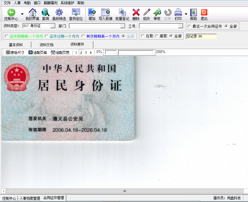 2019-06-05 10:36:55 浏览:3524 咨询电话:400-1800-278随着企业的不断发展与壮大,企业对员工信息的管理越来越严格与复杂,越来越多的证件与合同需要记录在系统中,实现信息化管理。如何即简单又高效地处理合同证件的管理?如何将合同或证件的扫描件上传到系统中?如何随时随地的导出我想查看的证件信息,并设置到期提醒功能?别担心,同鑫hr软件——合同证件管理??榻饩瞿恼庑┓衬?!